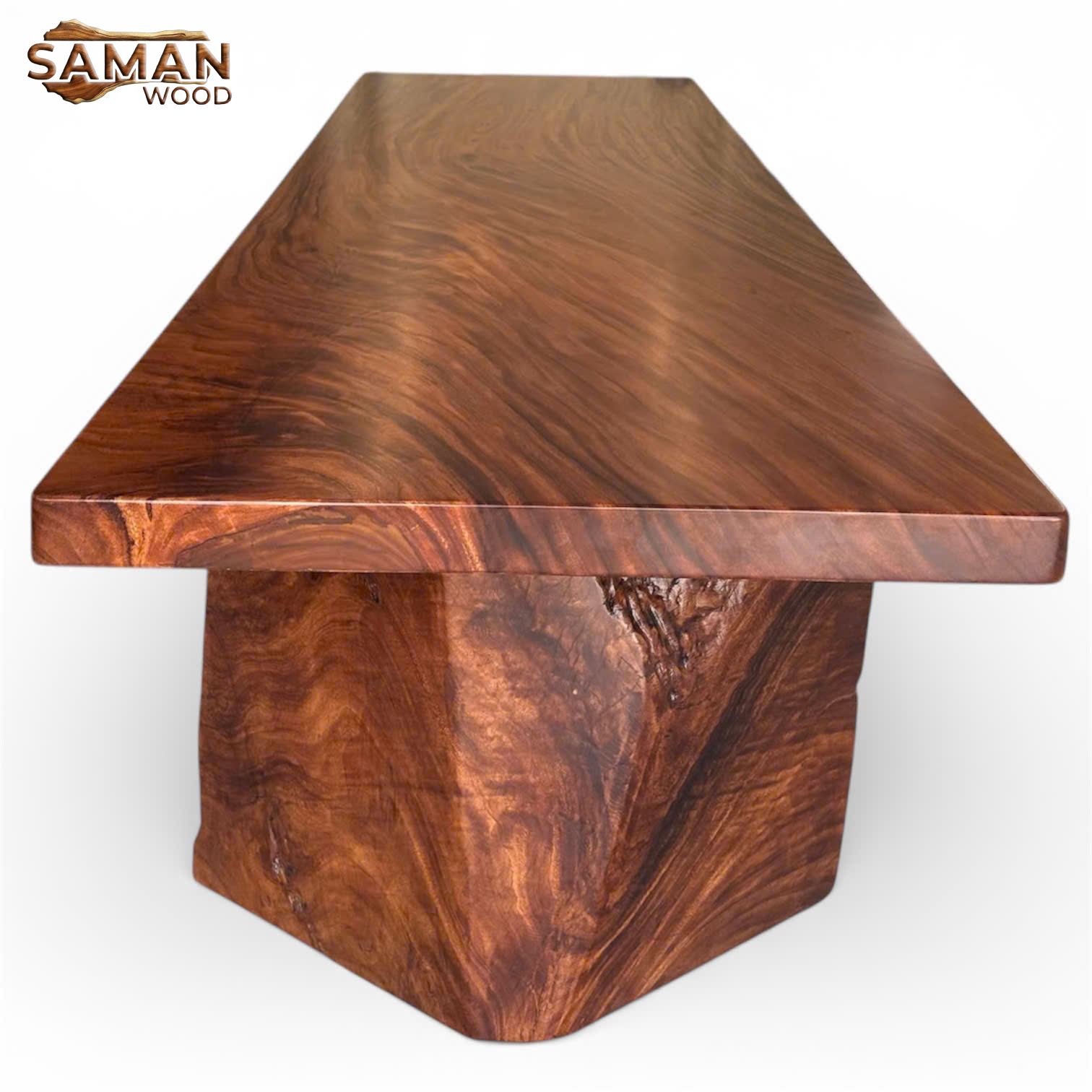 - Vân gỗ trải dài: Với chiều dài 2m8, hệ vân của Me Tây sẽ được phô diễn trọn vẹn từ những đường uốn lượn ở bìa gỗ đến những “mắt” gỗ độc đáo ở giữa.