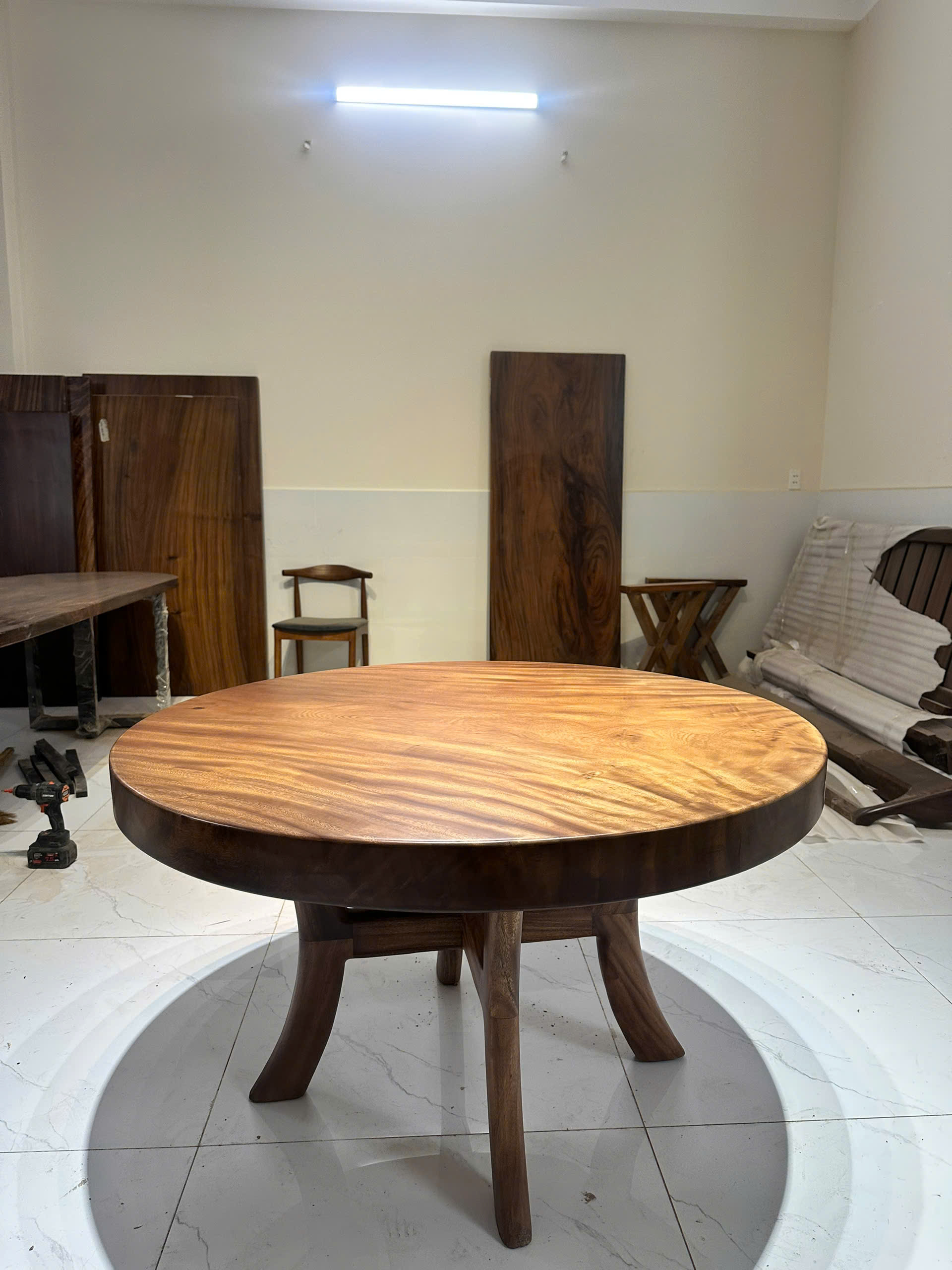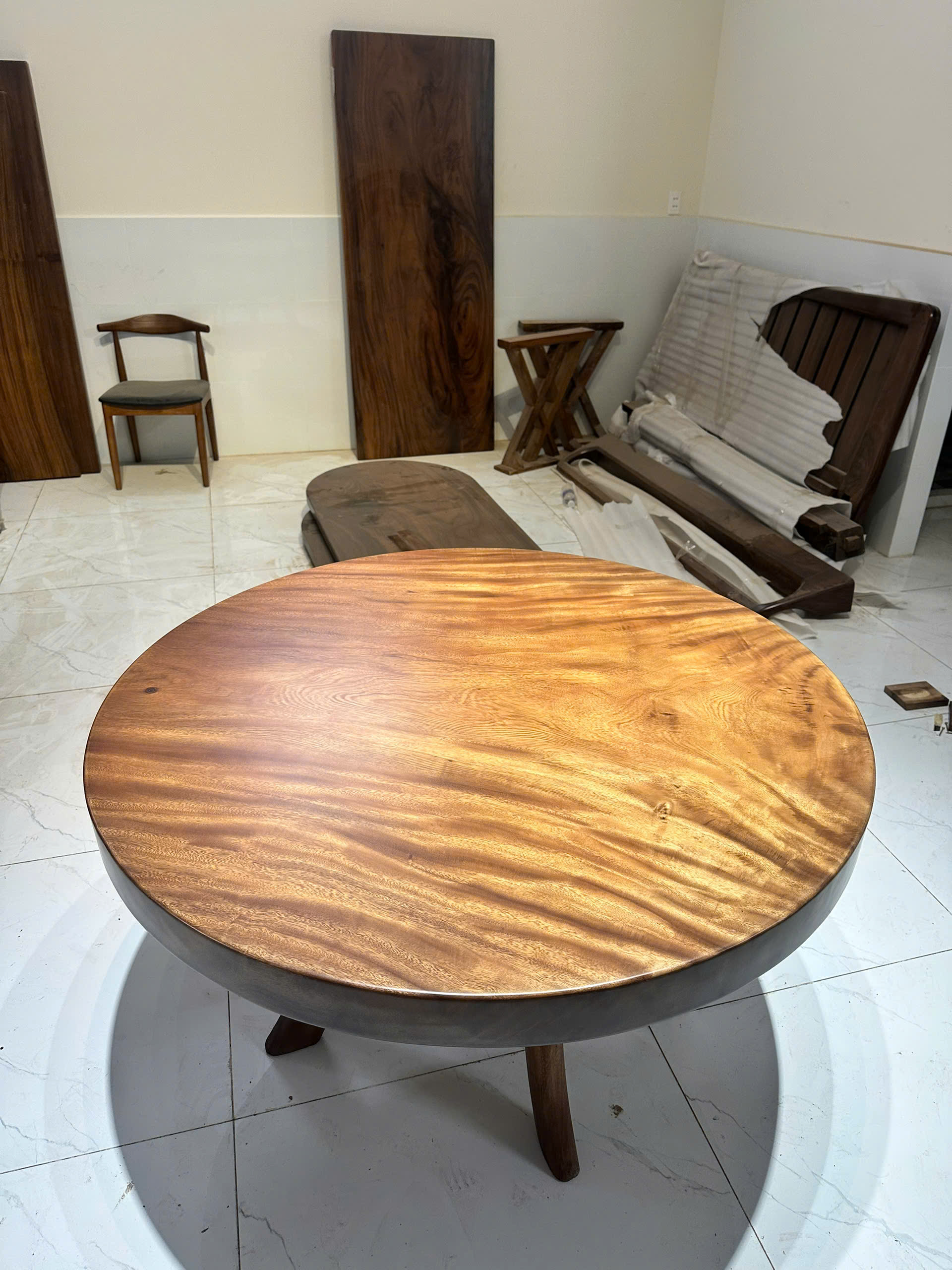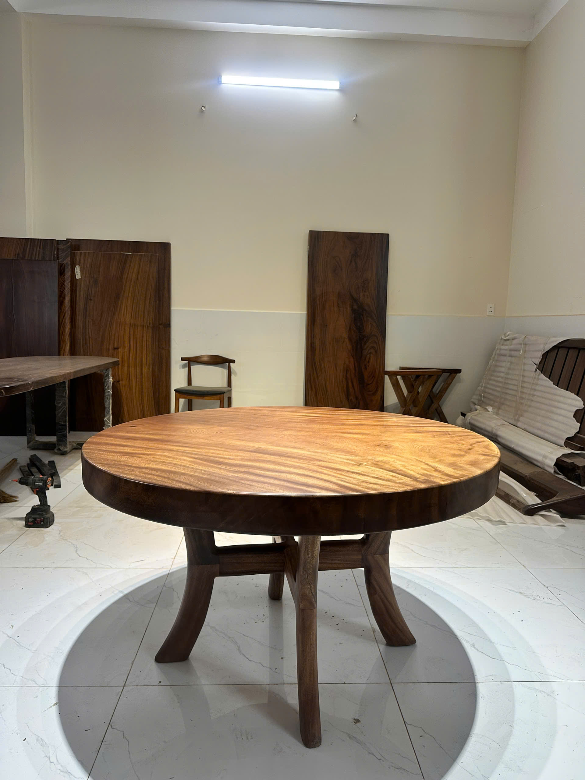 Bàn Tròn Gỗ Me Tây Nguyên Tấm 1m2 – Dày 9cm Cao Cấp | Saman Wood