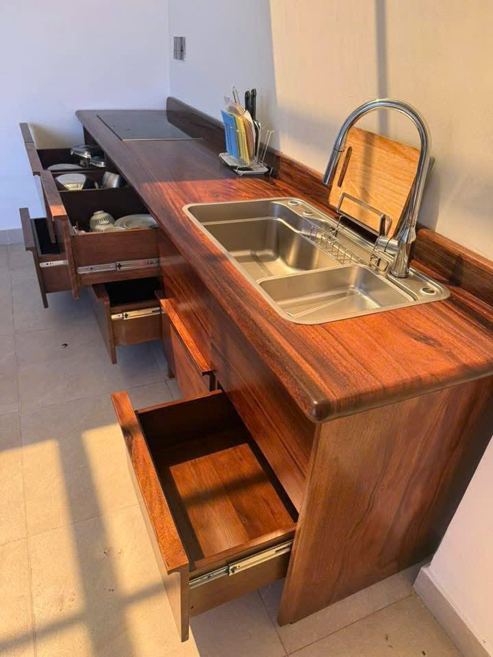 🪵 Tủ Bếp Dưới Gỗ Tự Nhiên Hiện Đại Gỗ Me Tây – Saman Wood